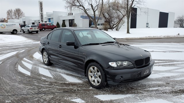 2005 BMW 325i Sedan. 113,569 miles. Clean title. 2 owner carfax. Fresh trade-in. Well Maintained. Maintenance up to date. New front and rear brake pads, rotors and calipers. Valve cover gaskets just serviced and spark plugs and cabin air filter just replaced. New Dunlop winter tires on 16 inch Sport wheels. Also comes with a set of 4 all season tires on OEM BMW wheels, tire tread at 9, and set of 4 1000 Miglia wheels. Non smoker. Moonroof. Navigation. Leather heated seats. Heated steering wheel. CD player. Headlight washers. Genuine wood trim. HomeLink. Brake assist. Stability control. 18/27 MPG. Very efficient. Clean and holds value.