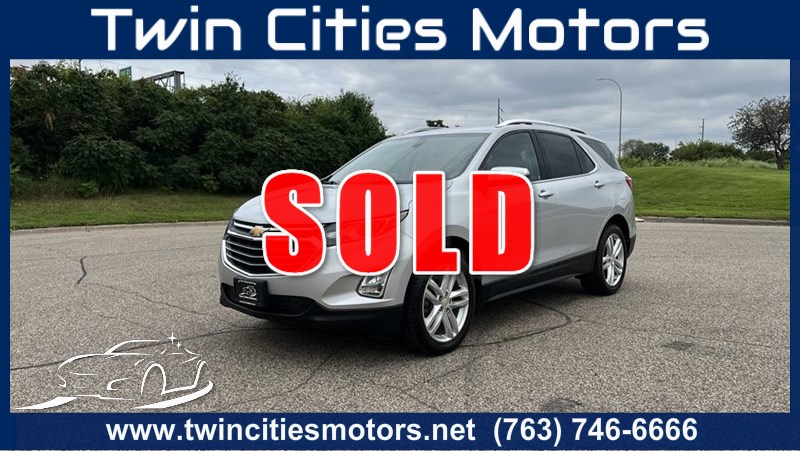 2019 Chevy Equinox 2.0 Premier AWD with 72,449 miles. Very clean and well maintained. 19 inch alloy wheels with new tires . LED headlights and daytime running lights. Fog lights. Power liftgate. MyLink with OnStar. Back up camera. Push button start with remote start. Apple CarPlay/Android Auto. Leather Heated seats. Rear park assist with rear cross traffic alert. Lane departure warning. Blind spot monitor. Bluetooth/USB/XM. Premium audio. HomeLink. Brake assist. Stability control. Very efficient 24/30 MPG. 2 owner prior salvage title, professionally repaired and inspected by the state of MN. Rear end damage airbags did not deploy. Pictures available upon request. Safe, reliable and holds value.
